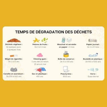 Cet article du site Ma Sécurité du ministère de l’Intérieur rappelle aussi le temps de dégradation de nombreux déchets du quotidien et les risques qu’ils représentent pour l’environnement.